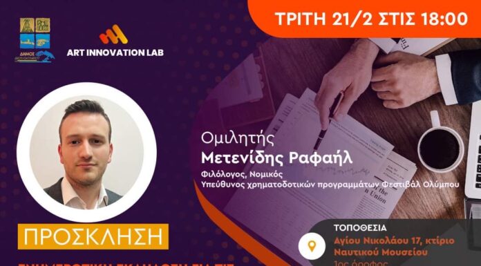 Δήμος Δίου-Ολύμπου: Ενημερωτική εκδήλωση για τις επιχορηγήσεις δράσεων σύγχρονου πολιτισμού την Τρίτη 21 Φεβρουαρίου Ο Οργανισμός Πολιτισμού-Αθλητισμού του Δήμου Δίου-Ολύμπου (ΟΠΑΔΔΟ) σε συνεργασία με την...