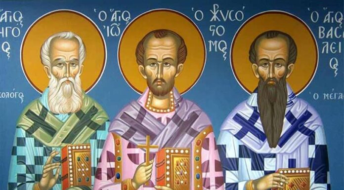 Τους «τρεις μεγίστους φωστήρες» της τρισηλίου Θεότητος, τις «κιθάρες του Πνεύματος» που «εις πάσαν την γην» εξέπεμψαν τον θείο λόγο, τα «εύλαλα στόματα της...